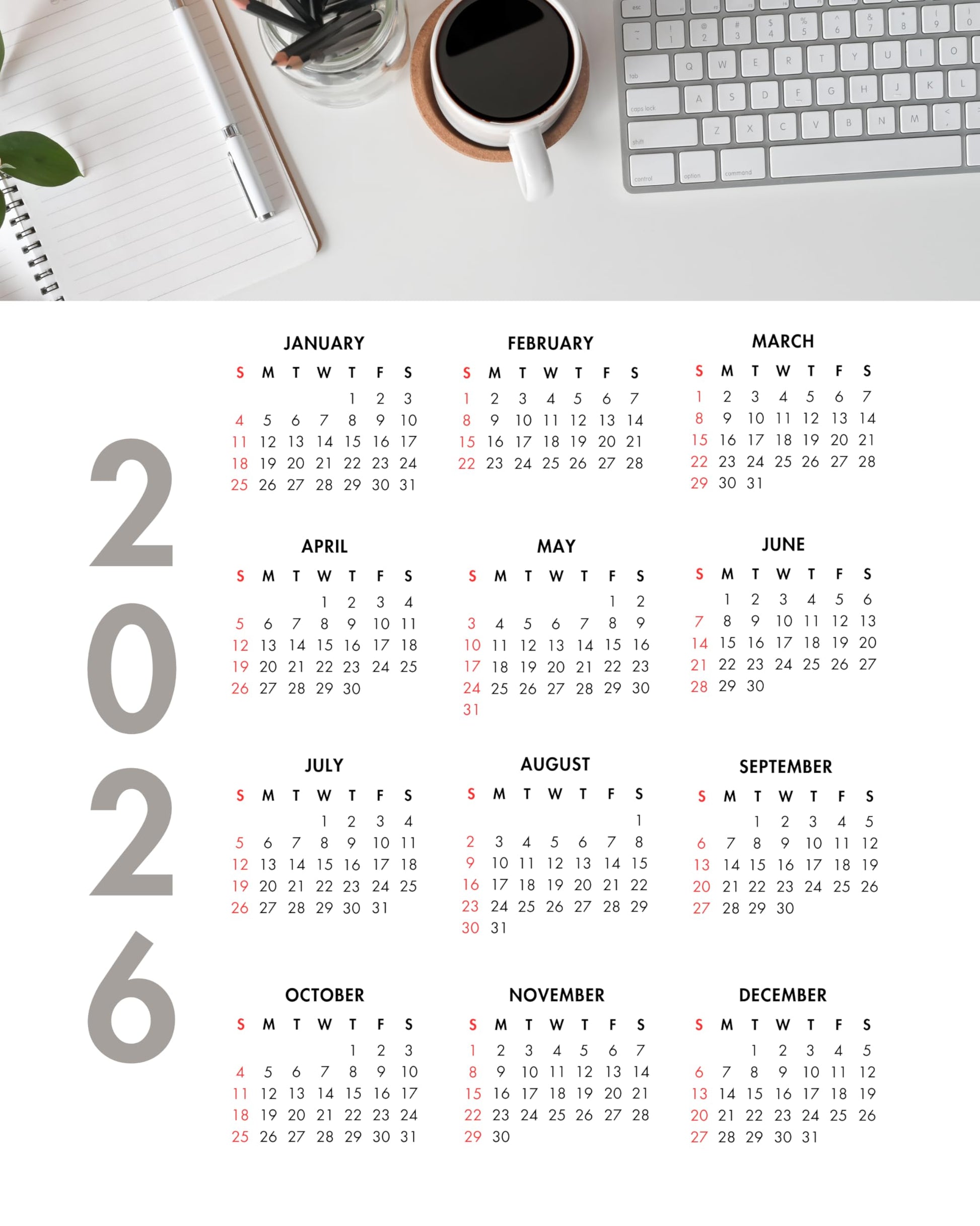 - β Modern Workspace Coffee Design: Featuring a sleek white desk setup with a cup of black coffee, keyboard, notebook, and pen, this 2026 calendar blends productivity with style. Perfect for offices, home workspaces, or study areas.